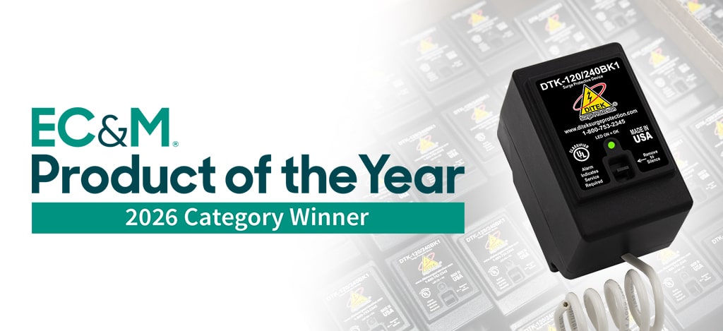 DITEK Surge Protection, is proud to announce that its newest whole home surge protective device (SPD), the DTK-120/240BK1, has been recognized as a winner in the Protective Devices category of the Electrical Construction & Maintenance (EC&M) 2026 Product of the Year Competition. This accolade is a testament to DITEK’s innovation, the device’s exceptional performance, and its impact on the industry and consumers since its release last year.