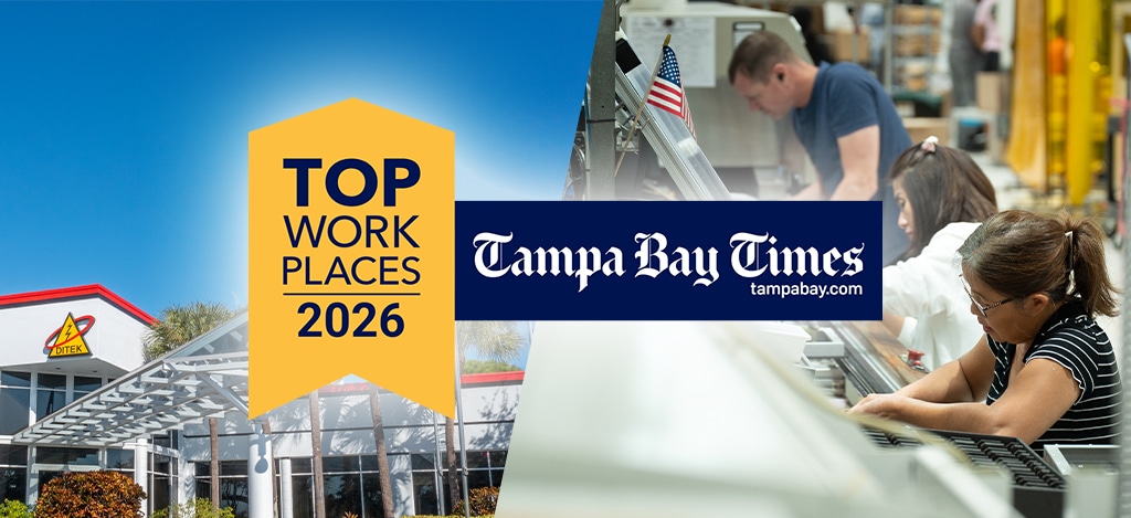 For the 17th consecutive year, DITEK Surge Protection has been recognized as one of the Tampa Bay Times Top Workplaces in 2026. This distinguished accolade highlights DITEK’s ongoing commitment to creating an inclusive, supportive, and dynamic work environment that fosters its team both personally and professionally.